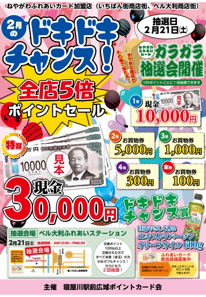 ベル大利商店街・いちばん街商店街 ガラガラ抽選会 2026.2.21(土) 寝屋川市